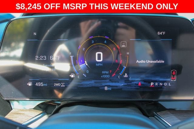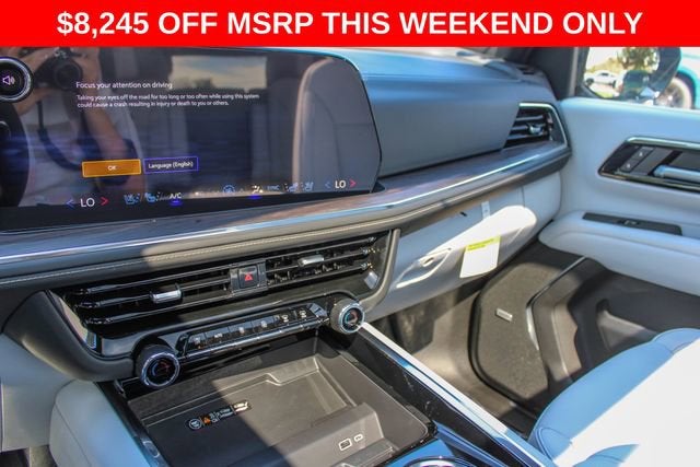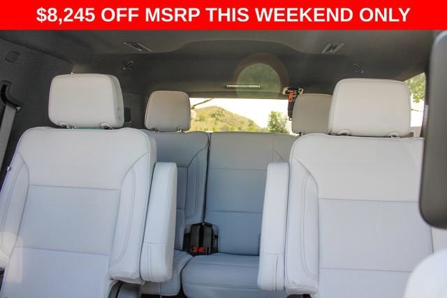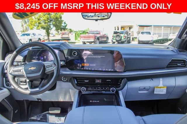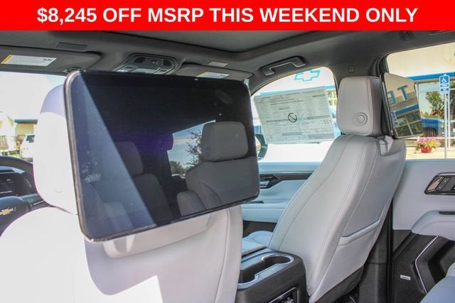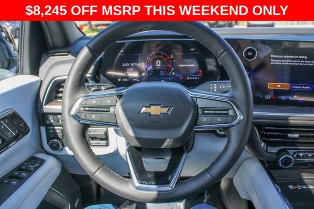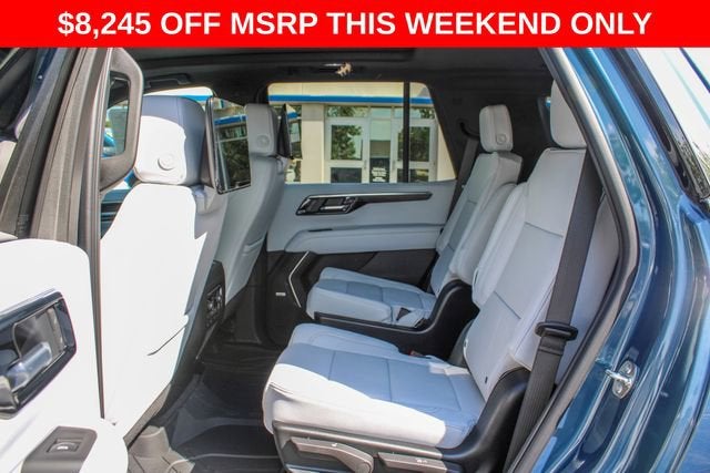4WD, Gray Leather, 1.5 KW Heater/Defrost Air System, 10 Speakers, 15 Diagonal Multi-Color Head-Up Display, 1st and 2nd Row Color-Keyed Carpeted Floor Mats, 2-Speed Active Electronic AutoTrac Transfer Case, 20 x 9 Polished Aluminum Wheels, 250-Amp Alternator, 3-Spoke Wrapped Steering Wheel, 3.23 Rear Axle Ratio, 3rd Row 60/40 Power-Folding Split-Bench Seat, 3rd Row All-Weather Floor Liners, 3rd row seats: split-bench, 4-Way Power Driver Lumbar Seat Adjuster, 4-Way Power Front Passenger Lumbar Seat Adjuster, 4-Wheel Disc Brakes, 8-Way Power Driver Seat Adjuster, 8-Way Power Front Passenger Seat Adjuster, 850 Cold-Cranking Amps Battery, ABS brakes, Adaptive suspension, Advanced Security Package, Advanced Trailering Package, Air Conditioning, All-Weather Cargo Mat, Alloy wheels, AM/FM radio: SiriusXM with 360L, Apple CarPlay/Android Auto, Auto High-beam Headlights, Auto-dimming door mirrors, Auto-Dimming Inside Rear-View Mirror, Auto-dimming Rear-View mirror, Auto-leveling suspension, Automatic temperature control, AutoSense Hands-Free Power Liftgate, Black Mirror Caps, Black Name Plates, Blind Zone Steering Assist with Trailering, Bose 10-Speaker Centerpoint Surround Audio System Feature, Brake assist, Bright Front and Rear Door Sill Plates, Bumpers: body-color, Chrome Door Handles with Body-Color Strip, Color-Keyed Carpeting Floor Covering, Compass, Delay-off headlights, Diesel B20 Fuel, Driver and Front Passenger Heated and Ventilated Seats, Driver door bin, Driver vanity mirror, Dual Exhaust System, Dual front impact airbags, Dual front side impact airbags, Dual-Pane Power Panoramic Sunroof, Electronic Stability Control, Emergency communication system: OnStar and Chevrolet connected services capable, Engine Block Heater, Exterior Parking Camera Rear, First and Second Rows Premium Floor Liners, Floor Console, Four wheel independent suspension, Front and Rear Black Bowtie Emblems, Front anti-roll bar, Front Bucket Seats, Front Center Armrest, Front dual zone A/C, Front fog lights, Front LED Fog Lamps, Front Pedestrian and Bicyclist Braking, Front reading lights, Frontal Driver and Outboard Passenger Airbags, Fully automatic headlights, Garage door transmitter, Glass Breakage Sensor, Heated 2nd Row Outboard Seats, Heated door mirrors, Heated Driver and Front Passenger Seats, Heated front seats, Heated rear seats, Heated Steering Wheel, Heated steering wheel, Hill Descent Control, Hitch View with Pan/Zoom Image Adjustment, Illuminated entry, Inside Rearview Auo-Dimming Rear Camera Mirror, Integrated Trailer Brake Controller, LED Headlamps with LED Daytime Running Lamps, LED Tail Lamps, License Plate Front Mounting Package, Low tire pressure warning, Magnetic Ride Control Suspension, Max Trailering Package, Memory seat, Memory Settings, Navigation system: Google built-in compatibility (select service plan required, terms and limitations apply), Occupant sensing airbag, Outside Heated Power-Adjustable Mirrors, Outside temperature display, Overhead airbag, Overhead console, Panic alarm, Passenger door bin, Passenger vanity mirror, Perforated Leather Seat Trim, Power door mirrors, Power driver seat, Power Liftgate, Power passenger seat, Power Release 2nd Row Bucket Seats, Power steering, Power Tilt and Telescopic Steering Column, Power windows, Preferred Equipment Group 1LZ, Premium audio system: Chevrolet Infotainment 3 Premium, Premium Dark Essentials Package, Premium Liner Protection Package, Radio data system, Radio: 17.7 Diagonal Advanced Color LCD Display, Rain sensing wipers, Rear air conditioning, Rear anti-roll bar, Rear Power Liftgate, Rear reading lights, Rear Seat Media System, Rear window defroster, Rear window wiper, Remote keyless entry, Remote Start, Security system, SiriusXM with 360L Trial Subscription, Smart Trailer Integration Indicator, Speed control, Speed