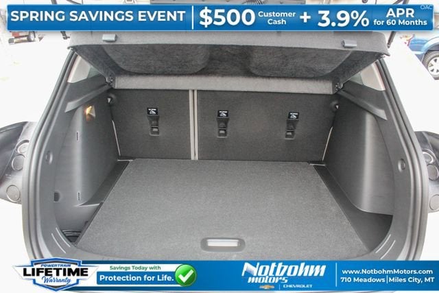 2-Way Adjustable Front Head Restraints, 2-Way Power Driver Lumbar Seat Adjuster, 3.50 Final Drive Axle Ratio, 4-Way Manual Front Passenger Seat Adjuster, 4-Wheel Disc Brakes, 6 Speakers, 6-Speaker Audio System Feature, 8-Way Power Driver Seat Adjuster, ABS brakes, Active Front Lower Grille Shutters, Adaptive Cruise Control, Air Conditioning, Alloy wheels, AM/FM radio: SiriusXM, Auto High-beam Headlights, Automatic temperature control, Brake assist, Bumpers: body-color, Compass, Delay-off headlights, Driver Confidence Package, Driver door bin, Driver vanity mirror, Dual front impact airbags, Dual front side impact airbags, Electronic Stability Control, Emergency communication system: OnStar One Essentials, Engine Block Heater, Evotex Seat Trim, Exterior Parking Camera Rear, Front anti-roll bar, Front Bucket Seats, Front Center Armrest, Front reading lights, Front wheel independent suspension, Fully automatic headlights, Heated door mirrors, Heated Driver and Front Passenger Seats, Heated front seats, Heated steering wheel, Illuminated entry, Lane Change Alert with Side Blind Zone Alert, Leather steering wheel, License Plate Front Mounting Package, Low tire pressure warning, Occupant sensing airbag, Outside temperature display, Overhead airbag, Overhead console, Panic alarm, Passenger door bin, Passenger vanity mirror, Power door mirrors, Power driver seat, Power steering, Power windows, Preferred Equipment Group 1SA, Premium audio system: Chevrolet Infotainment 3, Radio data system, Radio: AM/FM Stereo Audio System, Rear Cross Traffic Alert, Rear Park Assist, Rear window defroster, Rear window wiper, Remote keyless entry, Security system, SiriusXM Trial Subscription, Speed control, Split folding rear seat, Spoiler, Steering wheel mounted audio controls, Tachometer, Telescoping steering wheel, Tilt steering wheel, Traction control, Trip computer, Variably intermittent wipers, Wheels: 18 Black-Painted Aluminum, Wireless Apple CarPlay/Wireless Android Auto.