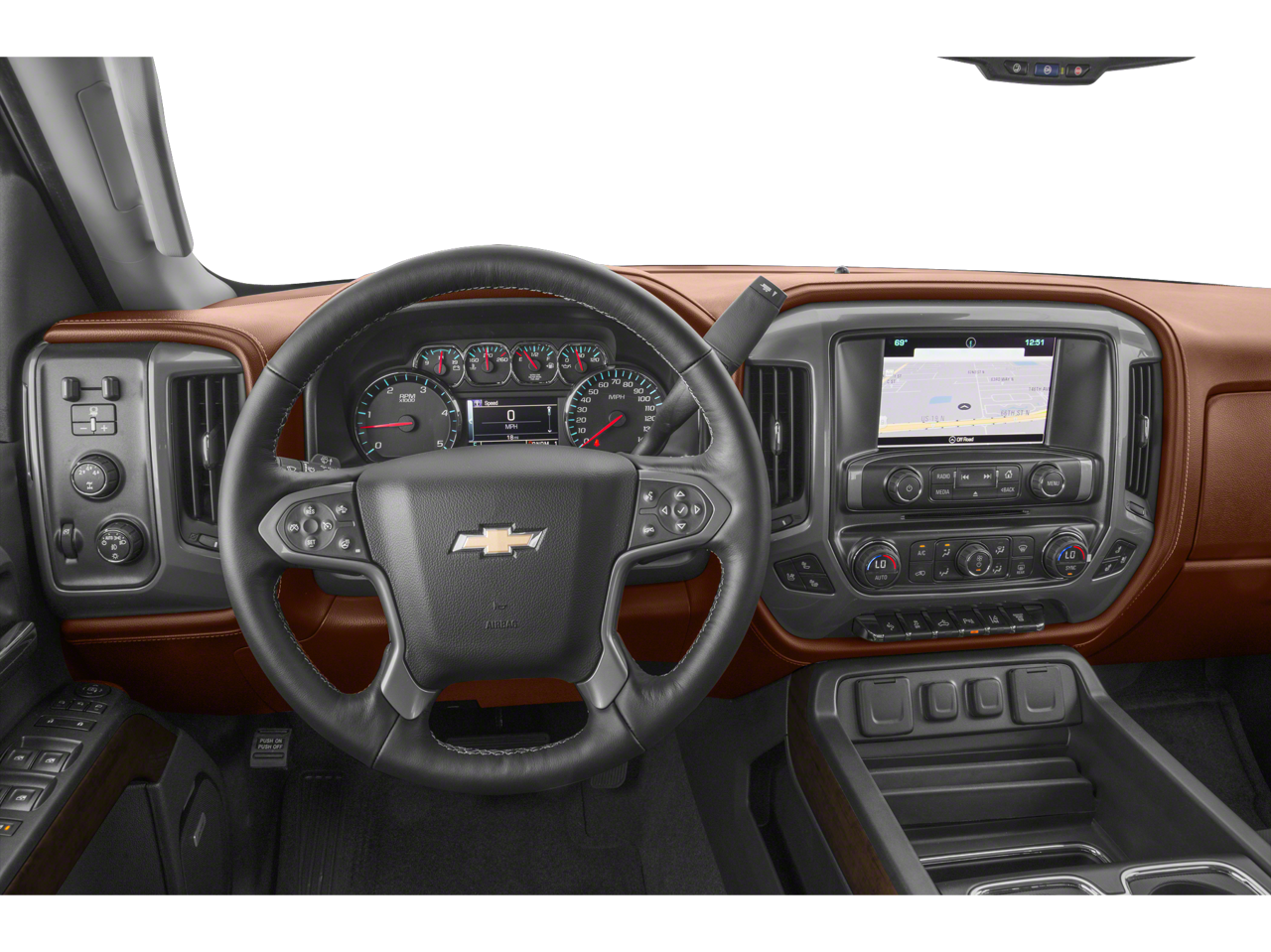 The exterior of this Silverado 3500HD High Country exudes a commanding presence, with its striking White paint and chrome accents. The LED cargo box lighting and skid plate package add both style and functionality, while the 6 rectangular chromed tubular assist steps and bright sill plates enhance the overall visual appeal.