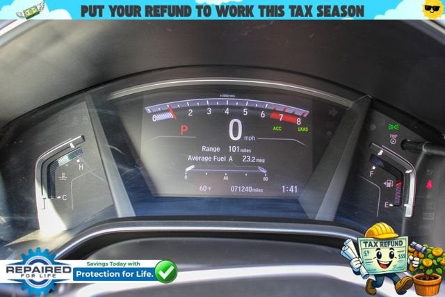 Under the hood, this CR-V is equipped with a 1.5L I4 DOHC 16V engine and a smooth-shifting CVT transmission, delivering an impressive 27 mpg in the city and 33 mpg on the highway. The available all-wheel-drive system ensures confident handling in a variety of road conditions.