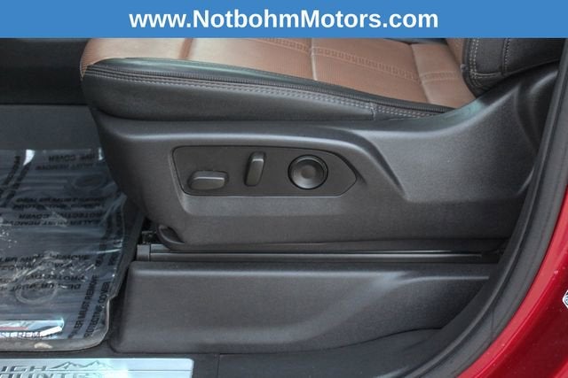 The exterior of the Silverado 1500 High Country exudes confidence and style, with its Radiant Red Tintcoat paint, chrome accents, and 20-inch painted aluminum wheels. The interior is equally impressive, featuring premium leather seating, genuine wood accents, and a 12.3-inch reconfigurable digital instrument cluster.