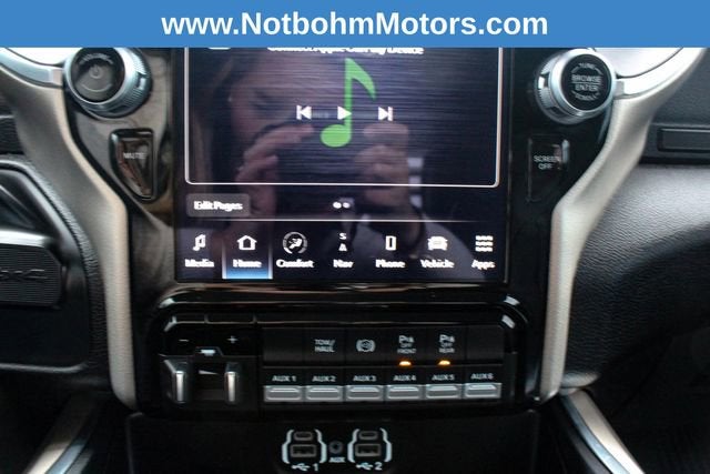 Inside, the cabin is designed for both comfort and functionality. Leather-trimmed bucket seats with power adjustability and lumbar support ensure you'll stay comfortable even on long drives. The 12-inch touchscreen display puts cutting-edge technology at your fingertips, with features like built-in navigation, Apple CarPlay, and Android Auto. The Bed Utility Group and Chrome Bumper Package add both style and practical utility, while the Heavy Duty Snow Plow Prep Group makes this Ram 3500 Laramie an ideal choice for tackling winter weather.