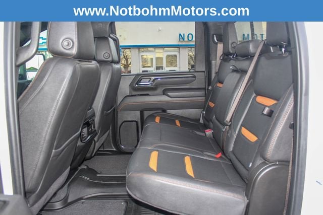10-Speed Automatic, 4WD, Jet Black w/Kalahari Accents w/Perforated Leather-Appointed Front Seat Trim, 120-Volt Bed Mounted Power Outlet, 120-Volt Instrument Panel Power Outlet, 2 Charge-Only Rear USB Ports, 2 Charge/Data USB Ports Inside Center Console, 2 USB Ports, 2-Speed Active Transfer Case, AT4 Preferred Package, Bed View Camera w/2 Trailer Camera Provisions, Bose Premium 7-Speaker Sound System, Deep-Tinted Glass, Electric Rear-Window Defogger, Floor-Mounted Center Console, Front Prem Floor Liners w/Removable Carpet Insert, Front Rain-Sensing Wipers, Gloss Black Header Grille & Grille Insert Bars, HD Surround Vision, Heated 2nd Row Outboard Seats, Heated Driver & Front Outboard Passenger Seats, Keyless Open & Start, LED Cargo Area Lighting, LED Smoked Amber Roof Marker Lamps, Manual Tilt-Wheel/Telescoping Steering Column, OnStar Services Capable, Power Front Passenger Windows w/Express Up/Down, Power Sliding Rear Window w/Defogger, Preferred Equipment Group 4SB, Push Button Start, Rear Cross Traffic Alert, Rear Prem Floor Liners w/Removable Carpet Insert, Rear Wheelhouse Liners, Remote Vehicle Starter System, Safety Alert Seat, SiriusXM w/360L Trial Subscription, Spray-On Pickup Bedliner w/GMC Logo, Steering Wheel Audio Controls, Trailer Cam Provisions & Trailer Viewing Software, Trailer Side Blind Zone Alert, Ultrasonic Front & Rear Park Assist, Unauthorized Entry Theft-Deterrent System, Universal Home Remote, Ventilated Driver & Front Passenger Seats, Wireless Charging, Wireless Phone Projection, X31 Off-Road Package, 10-Way Power Driver Seat Adjuster w/Lumbar, 10-Way Power Passenger Seat Adjuster w/Lumbar, 3 Years SiriusXM, 3.73 Rear Axle Ratio, 4-Wheel Disc Brakes, 7 Speakers, ABS brakes, Air Conditioning, Alloy wheels, AM/FM radio: SiriusXM with 360L, Apple CarPlay/Android Auto, Auto High-beam Headlights, Auto-dimming door mirrors, Auto-dimming Rear-View mirror, Automatic Emergency Braking, Automatic temperature control, Brake assist, Buckle to Drive, Bumpers: body-color, Compass, Delay-off headlights, Driver door bin, Driver Memory, Driver vanity mirror, Dual front impact airbags, Dual front side impact airbags, Electronic Stability Control, Emergency communication system: OnStar, Engine Block Heater, Following Distance Indicator, Forward Collision Alert, Front anti-roll bar, Front Bucket Seats, Front Center Armrest, Front dual zone A/C, Front fog lights, Front Pedestrian Braking, Front reading lights, Front wheel independent suspension, Fully automatic headlights, Heated door mirrors, Heated front seats, Heated rear seats, Heated steering wheel, Heavy-Duty 80 Amp Battery, Hill Descent Control, Hitch Guidance w/Hitch View, Illuminated entry, In-Vehicle Trailering System App, IntelliBeam Automatic High Beam On/Off, Lane Departure Warning System, Low tire pressure warning, Memory seat, Occupant sensing airbag, Off-Road Suspension, Outside temperature display, Overhead airbag, Overhead console, Panic alarm, Passenger door bin, Passenger vanity mirror, Perforated Leather-Appointed Front Seat Trim, Pickup Box, Power door mirrors, Power driver seat, Power passenger seat, Power steering, Power Sunroof, Power windows, Power-Retractable Black Assist Steps, Radio: AM/FM w/Premium GMC Infotainment System, Rain sensing wipers, Rear reading lights, Rear seat center armrest, Rear step bumper, Rear window defroster, Remote keyless entry, Security system, Speed control, Speed-sensing steering, Split folding rear seat, Steering wheel mounted audio controls, Tachometer, Telescoping steering wheel, Tilt steering wheel, Traction control, Trip computer, Turn signal indicator mirrors, Variably intermittent wipers, Ventilated front seats, Voltmeter, Wheels: 20 High Gloss Black 8 Spokes Aluminum, 10-Speed Automatic, 4WD, Jet Black w/Kalahari Accents w/Perforated Leather-Appointed Front Seat Trim, 120-Volt Bed
